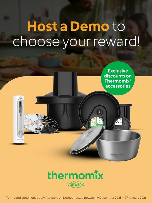 Whether this is your first cooking experience or your fifth, hosting a Thermomix® demo is always rewarding. Invite two guests who haven’t experienced the TM7 before and enjoy a special thank‑you gift from Thermomix® just for hosting.